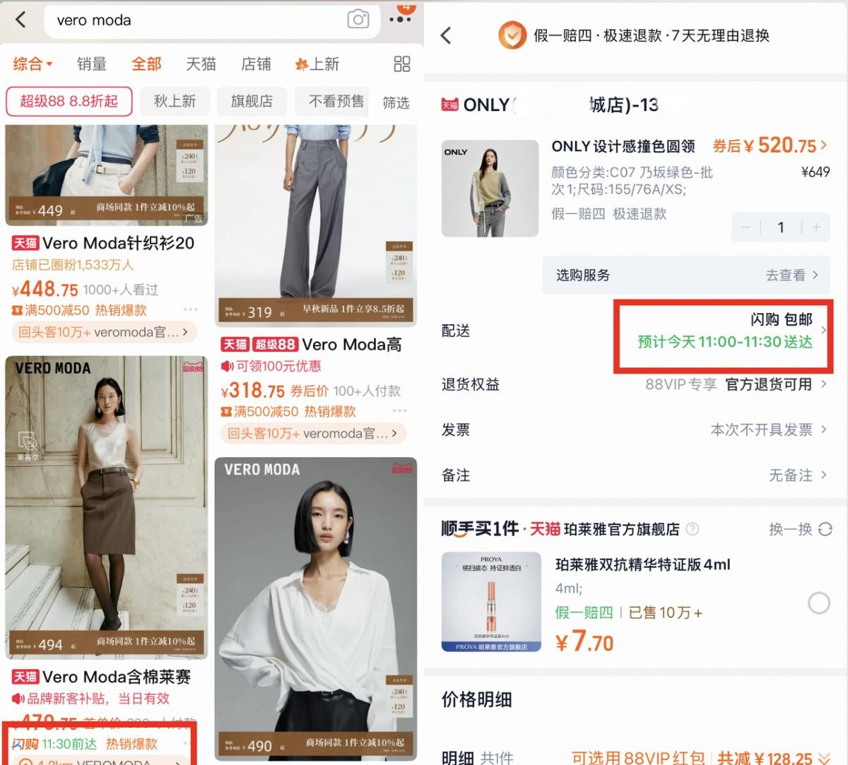 另外,流量分发也有问题。淘宝目前其实还没有把闪购选项推到搜索结果最前面,消费者很多时候不知道这个功能,一不小心就成了“隐身业务”。你想推广,它却藏着掖着,这怎么玩?
