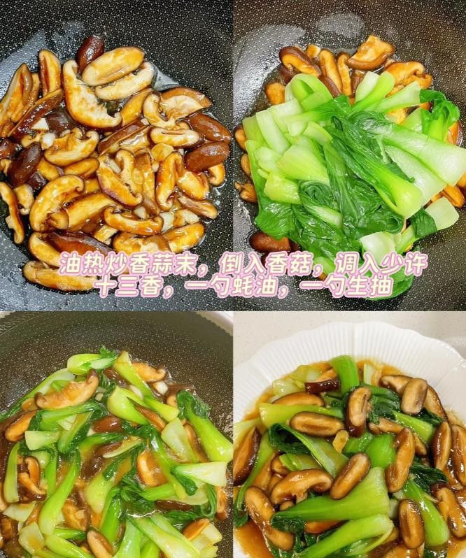 先说个最基础的,香菇油菜。这组合很经典,一把油菜配上新鲜香菇,加蚝油、生抽、十三香,锅里翻两下,香味能飘满屋。这菜有多容易做?你最多花十几分钟,难度真不高。