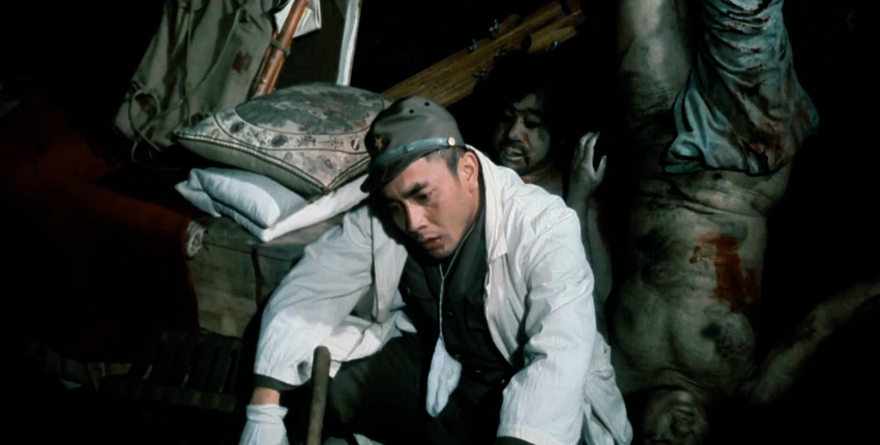 甚至连剧组工作人员有的也没逃过。有个在731干了一个月的人,受不了尸体味和氛围,每天呕吐。牟敦芾直接把他拍下来放电影里……