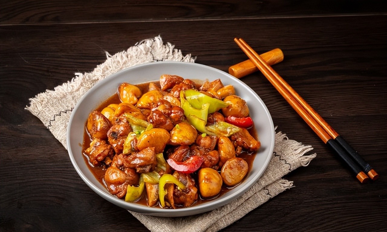 而另一道菜则是板栗烧鸡。这可是备受喜爱的丰收菜,金黄色的鸡肉象征着希望,甜糯板栗则寓意圆满富足。做法也没啥难度,把家养的土鸡剁块焯水之后,用姜葱爆香,再加入黄酒、酱油调味,放进板栗后就小火慢炖,直到汤汁浓郁,鸡肉和板栗都充分入味。最后加点冰糖提亮,端上桌后家里人一筷接一筷,气氛顿时热络起来。